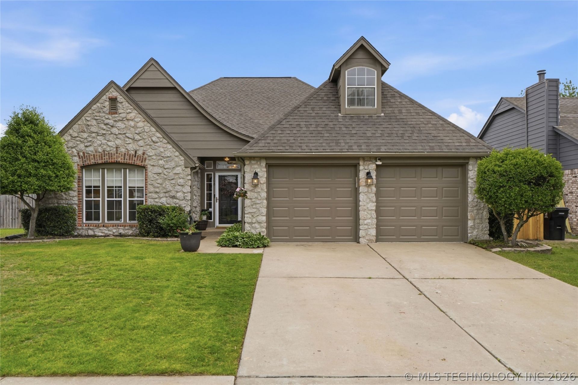 Welcome to this beautifully maintained Broken Arrow home, where comfort, space, and thoughtful updates come together to create a place that truly feels like home. Situated on a spacious corner lot, the property offers added privacy, charming curb appeal, and room to spread out both inside and out. From the moment you walk in, you're greeted with an inviting layout designed for everyday living and easy entertaining. The formal dining room sets the stage for gatherings, while the adjoining flex space offers the perfect spot for a home office, cozy sitting area, or playroom whatever fits your lifestyle best. At the heart of the home, the kitchen features granite countertops, stainless steel appliances, and plenty of space to cook, connect, and create memories. It opens seamlessly into the main living area, where custom built-ins frame a warm fireplace, making it the perfect place to unwind at the end of the day. The downstairs primary suite offers a peaceful retreat, along with two additional bedrooms for convenience and flexibility. Upstairs, you'll find even more space with an additional bedroom, a full Pullman bath, and a large game room that can easily serve as a fifth bedroom, media space, or second living area. Step outside and you'll find a backyard designed for making the most of every season, featuring an extended covered patio ideal for morning coffee, evening dinners, or weekend gatherings. Just a short walk away, the neighborhood playground adds even more charm to this welcoming community. With numerous updates already completed such as new high end vinyl floors, furnace, exterior paint, hot water tank, and new gas range. This home is truly move-in ready and waiting for its next chapter. Come experience the warmth, space, and lifestyle this home has to offer.